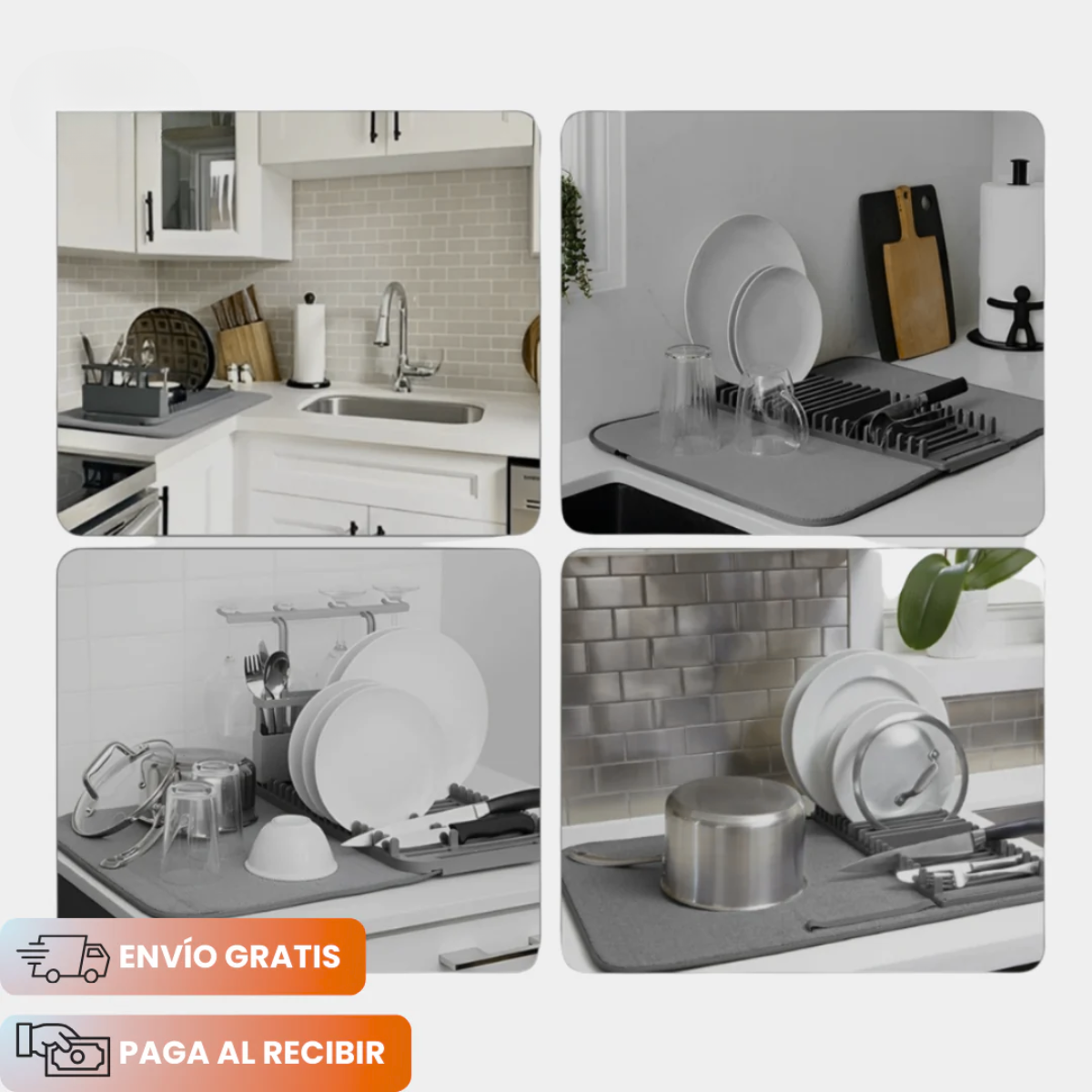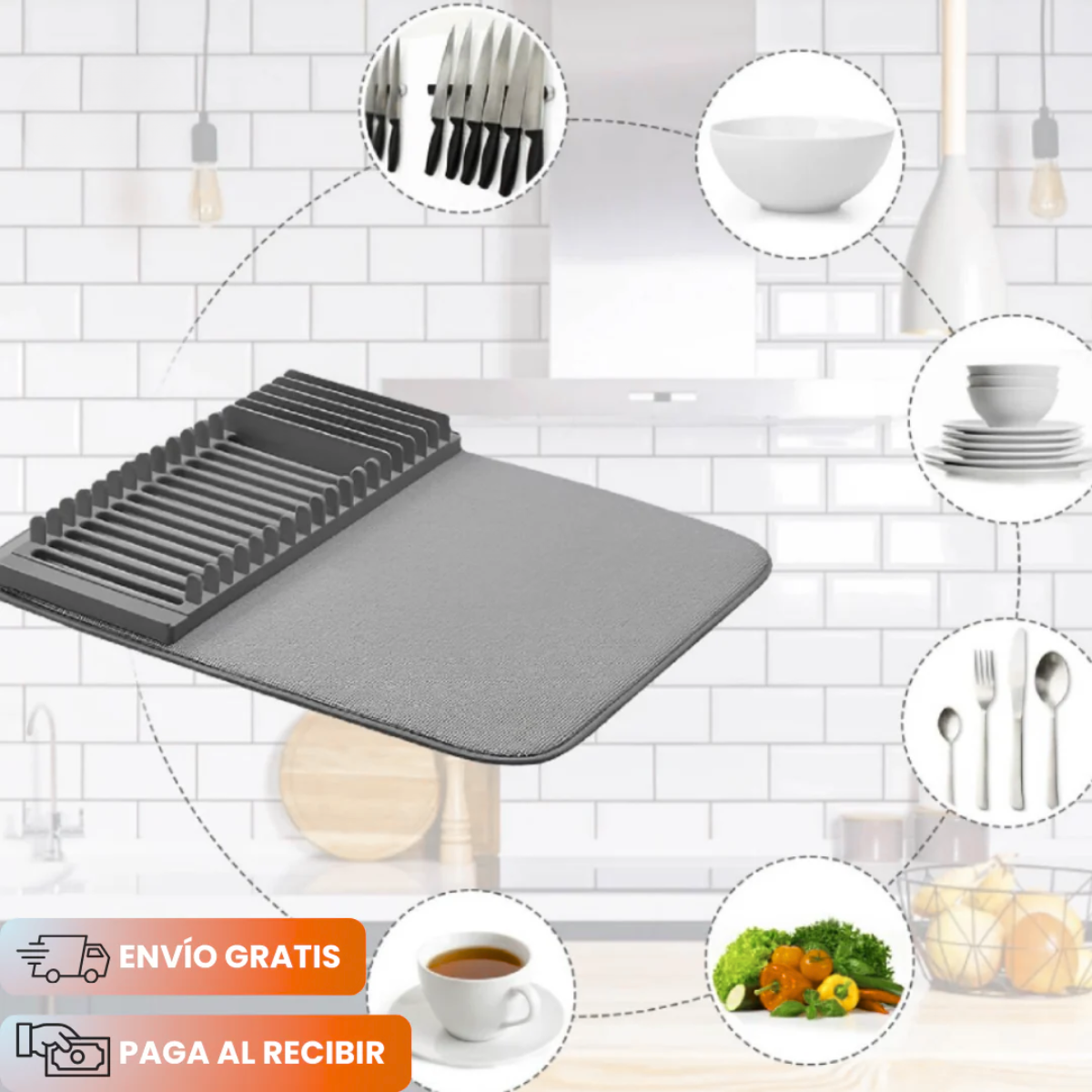 🔹 Alfombrilla de secado ultra absorbente: atrapa el agua rápidamente y evita que se esparza por la encimera.
