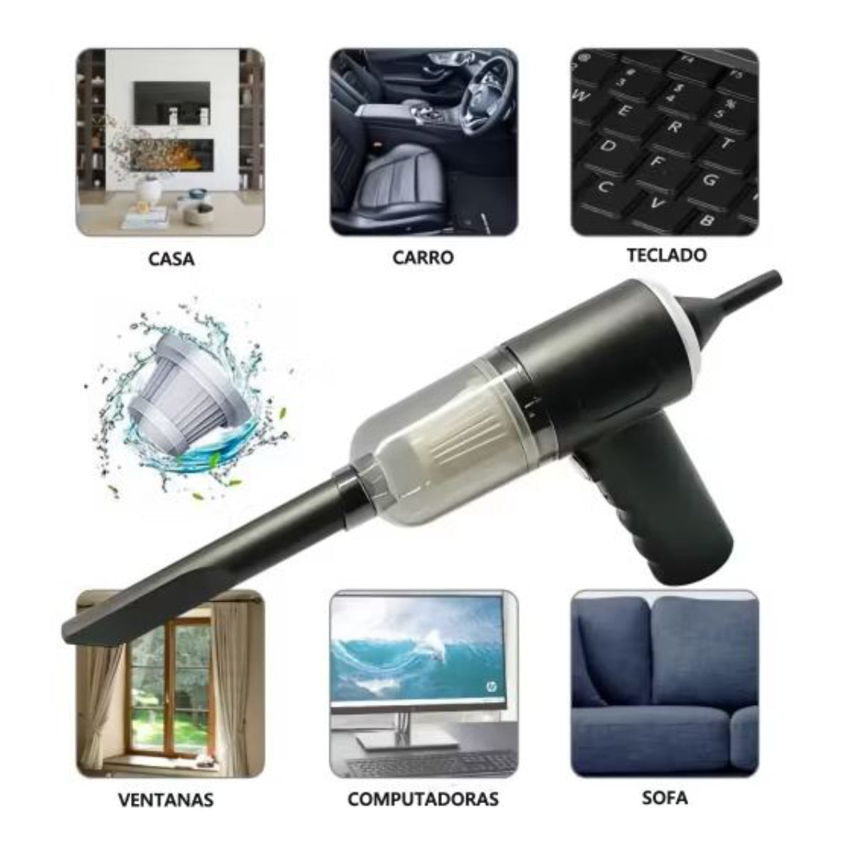 ¡Nuestra aspiradora inteligente es la herramienta perfecta para limpiar su automóvil y su hogar en minutos! Eliminar el polvo y la suciedad nunca ha sido tan fácil y rápido