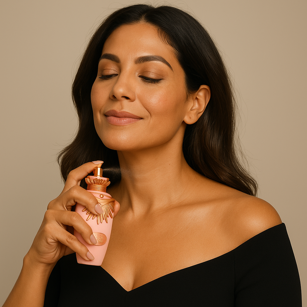 🔹 Notas de fondo: un cierre cálido e inolvidable con ámbar, sándalo y castaña, que envuelve la piel con un toque cremoso y elegante.